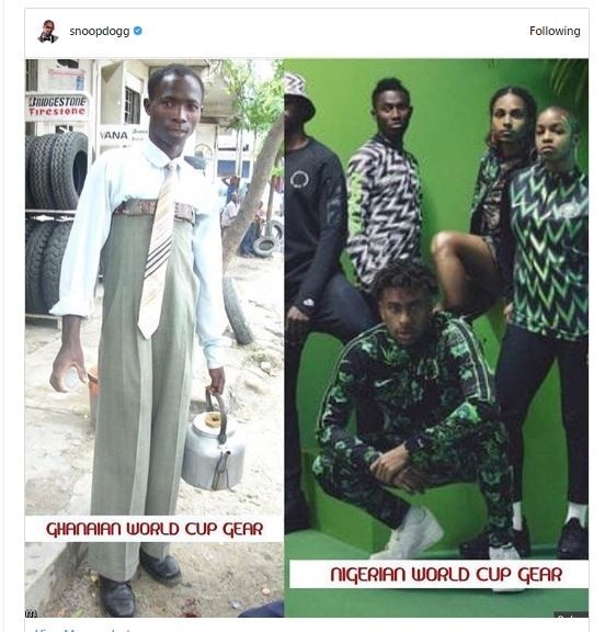 Rapper, Snoop Dogg took to Instagram to shade Ghana for not qualifying for the 2018 World Cup in Russia.